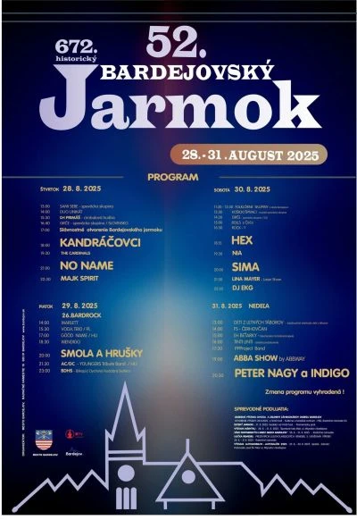 Uličky krásneho starobylého historického mesta na Slovensku v závere augusta opätovne ožijú na štyri dni netradičným ruchom obchodníkov, remeselníkov, umelcov a návštevníkov už 671. ročníka historického a 51. ročníka novodobého Bardejovského jarmoku.