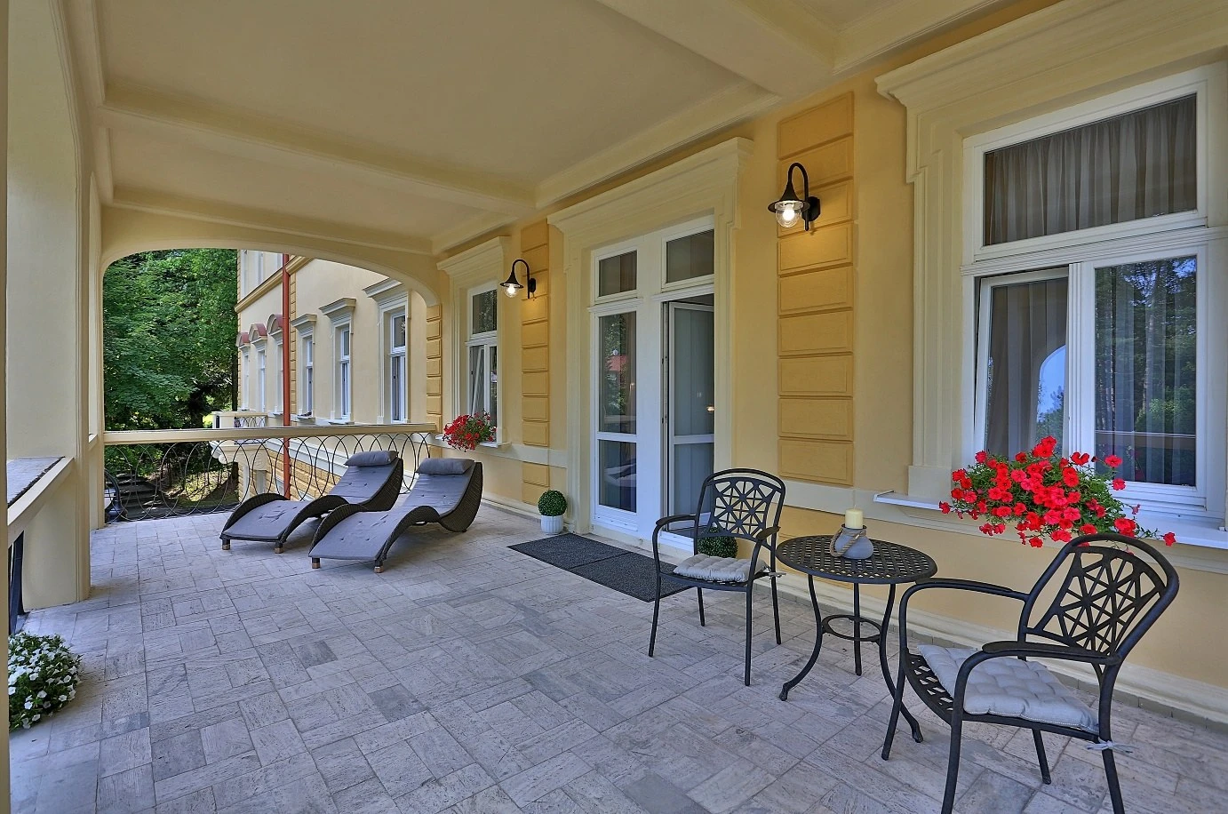 Štýlový liečebný dom Alžbeta sa nachádza v kúpeľnom parku, vedľa budovy Balneoterapie, kde sa podávajú liečebné procedúry.