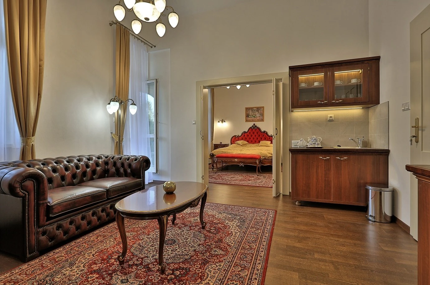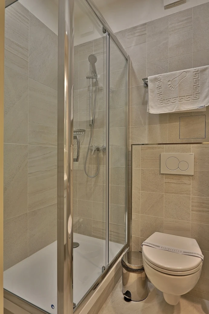Obývacia a spálňová časť, rozkladacia pohovka, kuchynská linka, rýchlovarná kanvica, televízor, telefón, chladnička, WC, vaňa, hotelový trezor. Súčasťou vybavenia je župan, hotelové papučky, otvárač na fľaše, hubka na čistenie obuvi. Na každé lôžko - nočný stolík alebo polička s nočnou lampou, sklenený pohár, kreslo alebo stolička, v skrini 4 ks vešiakov, poduška a obliečka, prikrývka a obliečka. Kúpeľňa: sušič na vlasy, kozmetické zrkadlo, osobná váha, hygienické vreckovky v krabičke, odličovací set, toaletné mydlo, telové mlieko, vlasový šampón. Na každé lôžko – 1 osuška, 1 uterák.