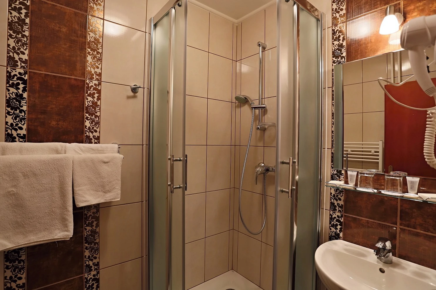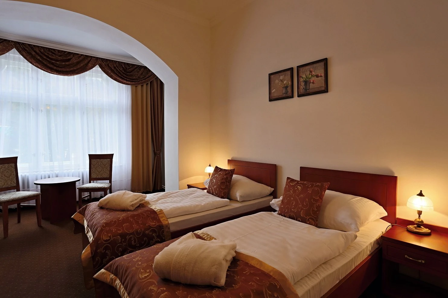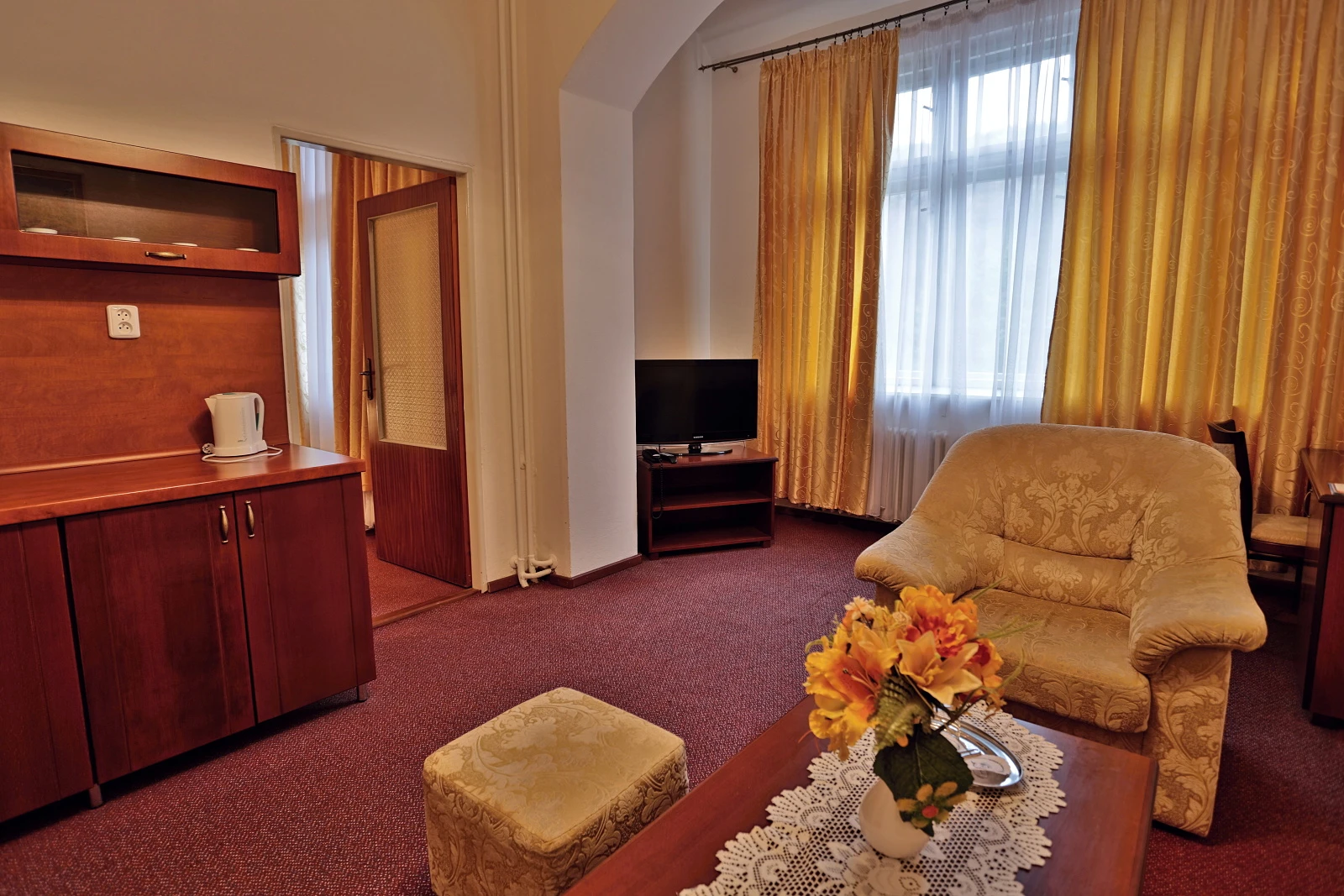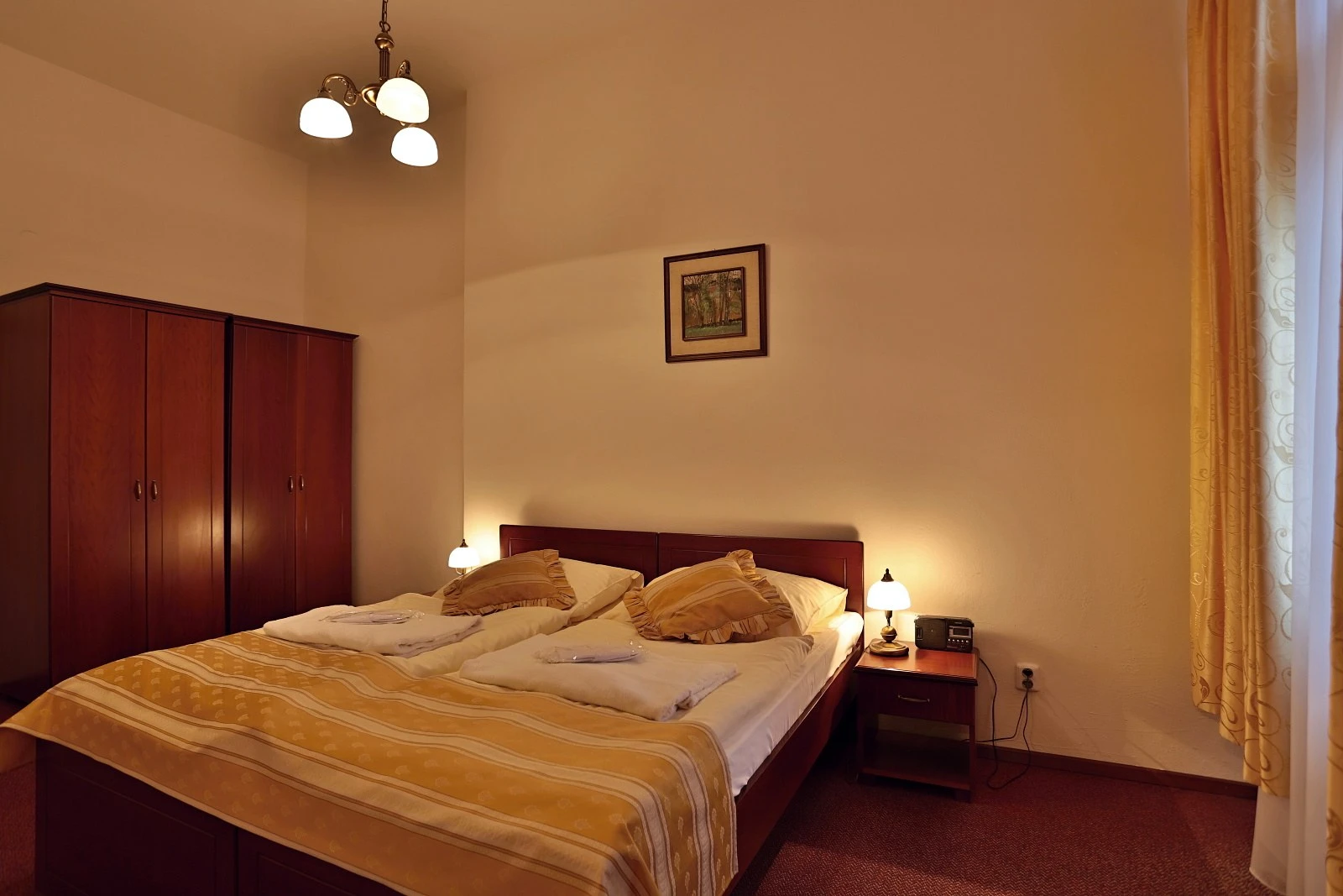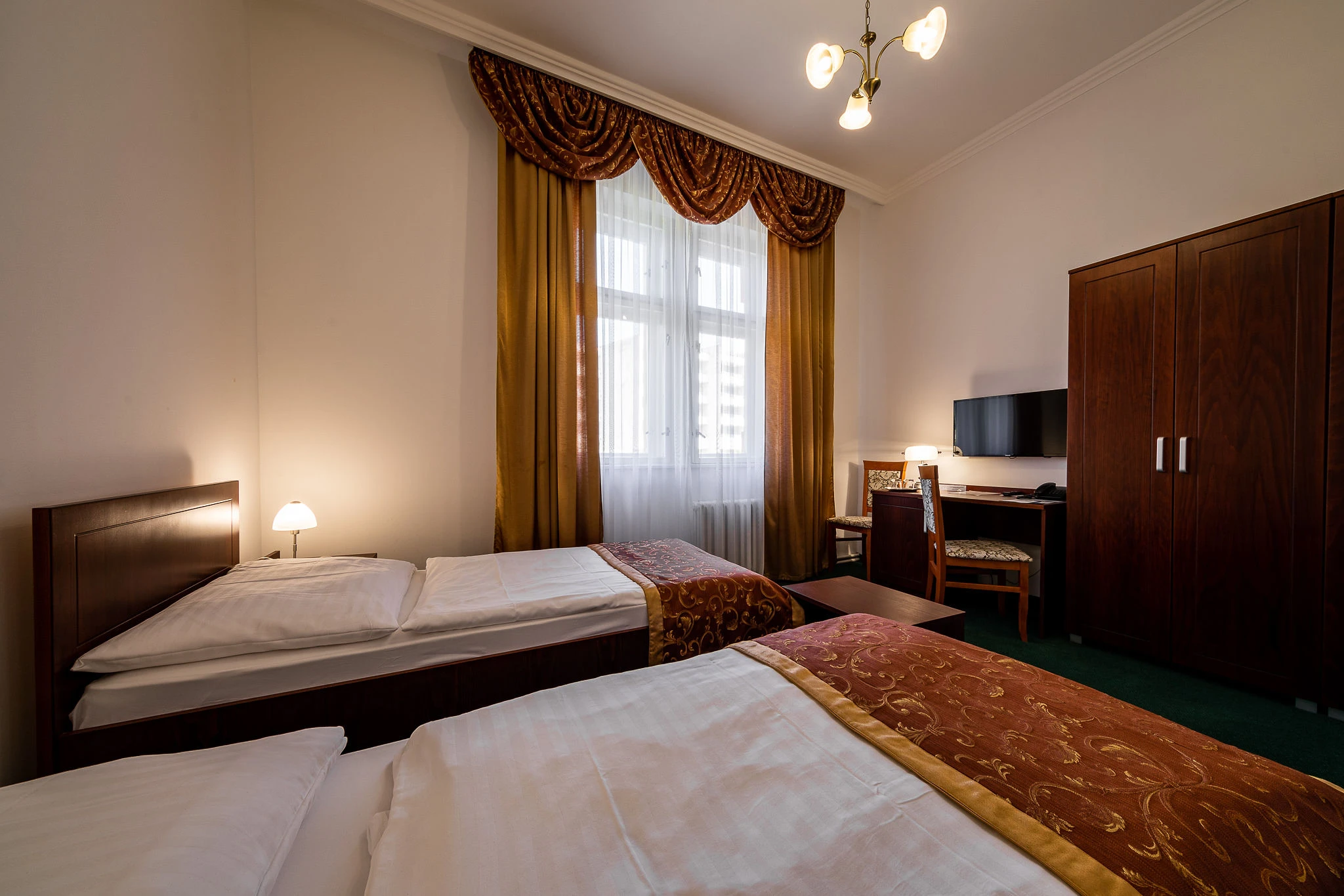 Televízor, telefón, chladnička, WC, sprcha. Súčasťou vybavenia je rýchlovarná kanvica, hotelový trezor, župan, hotelové papučky, otvárač na fľaše, hubka na čistenie obuvi. Na každé lôžko - nočný stolík alebo polička s nočnou lampou, sklenený pohár, kreslo alebo stolička, v skrini 4 ks vešiakov, poduška a obliečka, prikrývka a obliečka. Kúpeľňa: sušič na vlasy, kozmetické zrkadlo, osobná váha, hygienické vreckovky v krabičke, odličovací set, toaletné mydlo, vlasový šampón. Na každé lôžko – 1 osuška, 1 uterák.